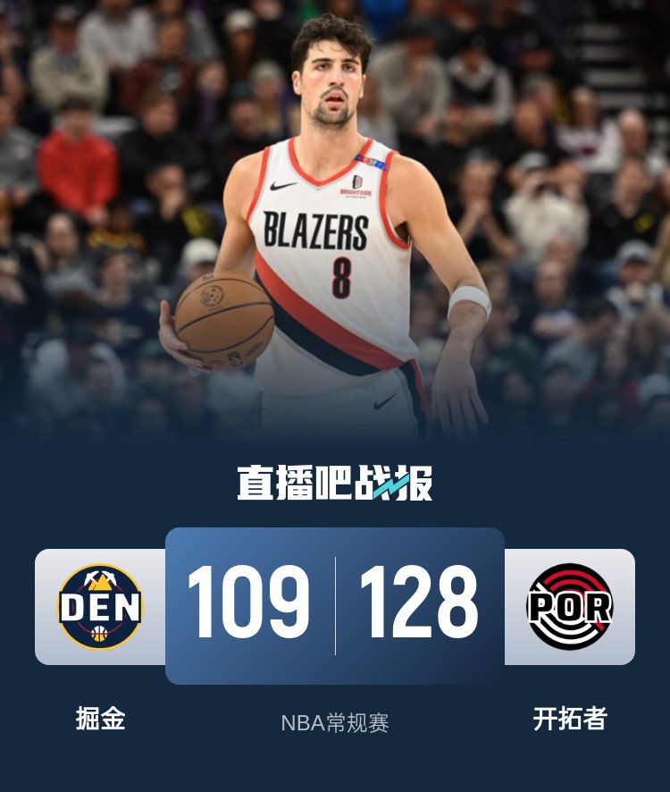 阿夫迪亚36+8+7 约基奇缺阵 掘金不敌开拓者助湖人升至第3