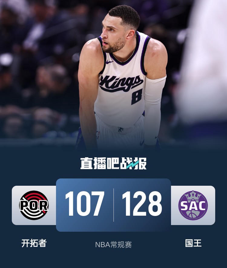 拉文29分 小萨22+19+6 阿夫迪亚24+9 国王轻取开拓者止4连败