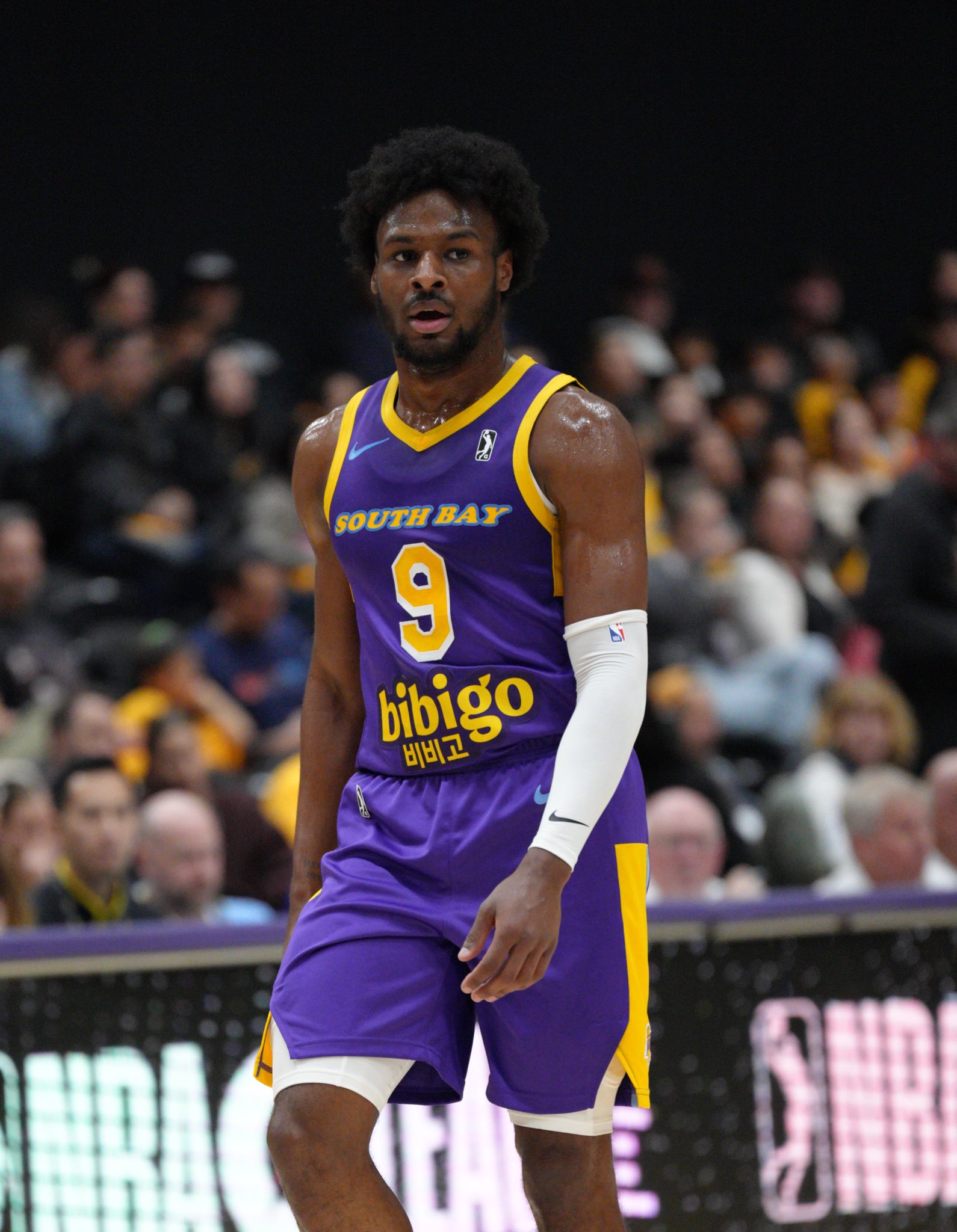 此役,湖人新秀布朗尼-詹姆斯伤愈复出征战G联盟,他父亲勒布朗-詹姆斯现场观战。