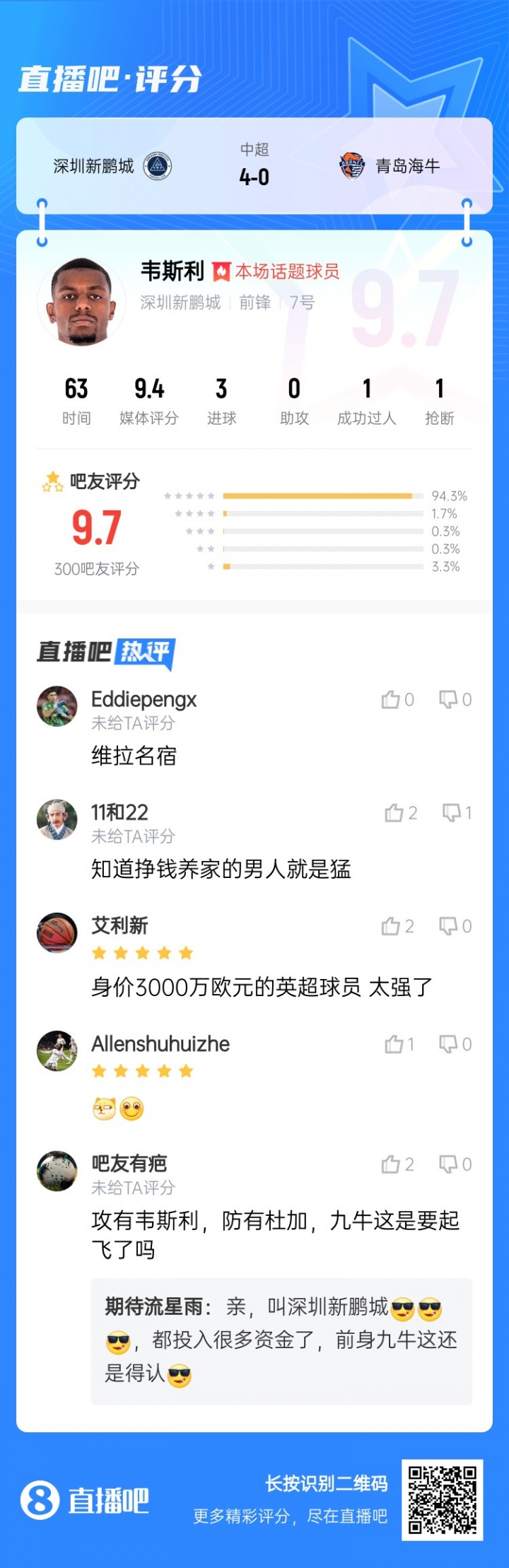 【】中超第11轮最佳球员:吧友力推南波赛文!韦世豪首当选