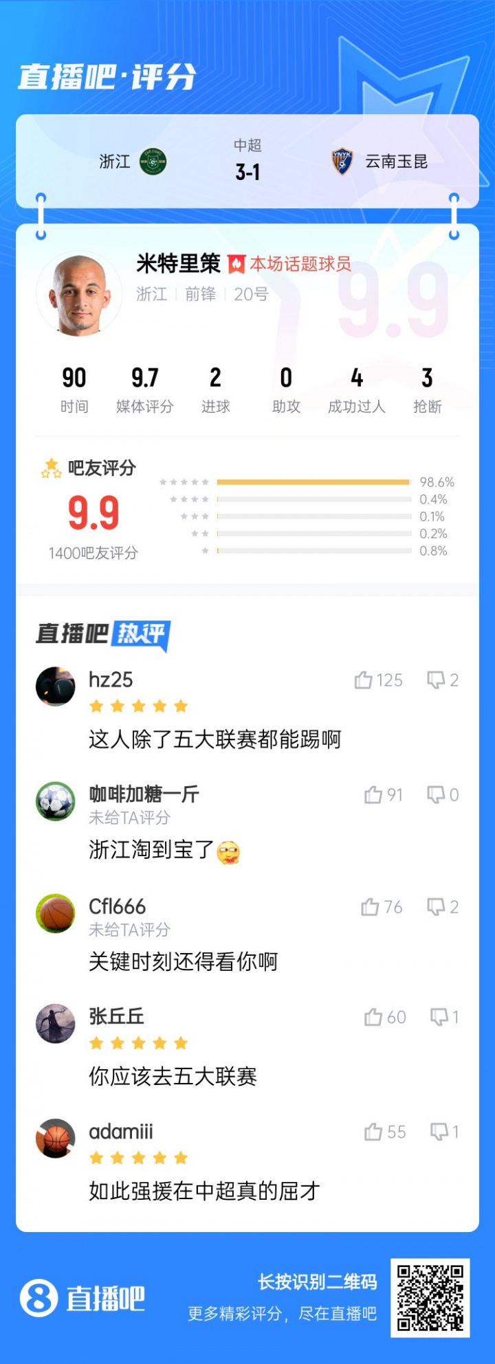 【】中超第四轮最佳球员:基莱斯当选,为了天津永远进攻!