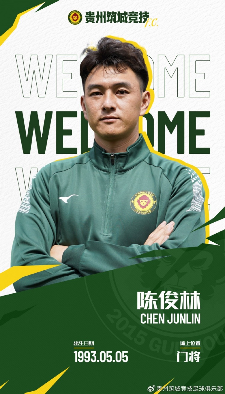 【官宣】欢迎陈俊林加盟贵州筑城竞技