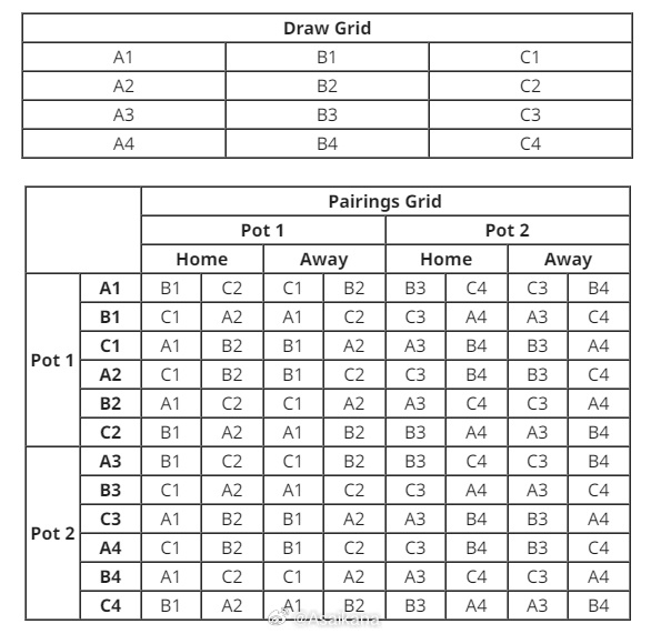 此次抽签东西亚区仍将分开进行。抽签时,将首先从1号种子里混抽确定A1、B1、C1、A2、B2、C2的球队,1号种子球队全部抽完后,再从2号种子里混抽确定A3、B3、C3、A4、B4、C4的球队。同时,抽签还将遵循同协会回避的原则,即来自同一协会的球队将不会在瑞士轮阶段进行比赛,如果正巧抽到,将会手动调整到下一个签位。