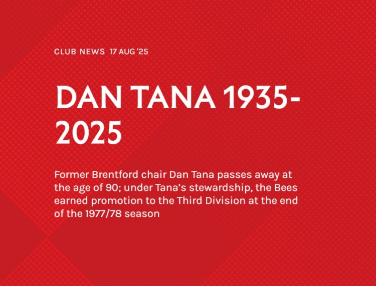 除了与布伦特福德和长期与贝尔格莱德红星的关系外,塔纳还是一位非常成功的餐馆老板,最著名的是他在加利福尼亚州西好莱坞经营的一家以他的名字命名的餐厅“丹-塔纳”。他还是一名演员和电影制片人。布伦特福德全体成员在此向丹的家人和朋友表示深切的哀悼。